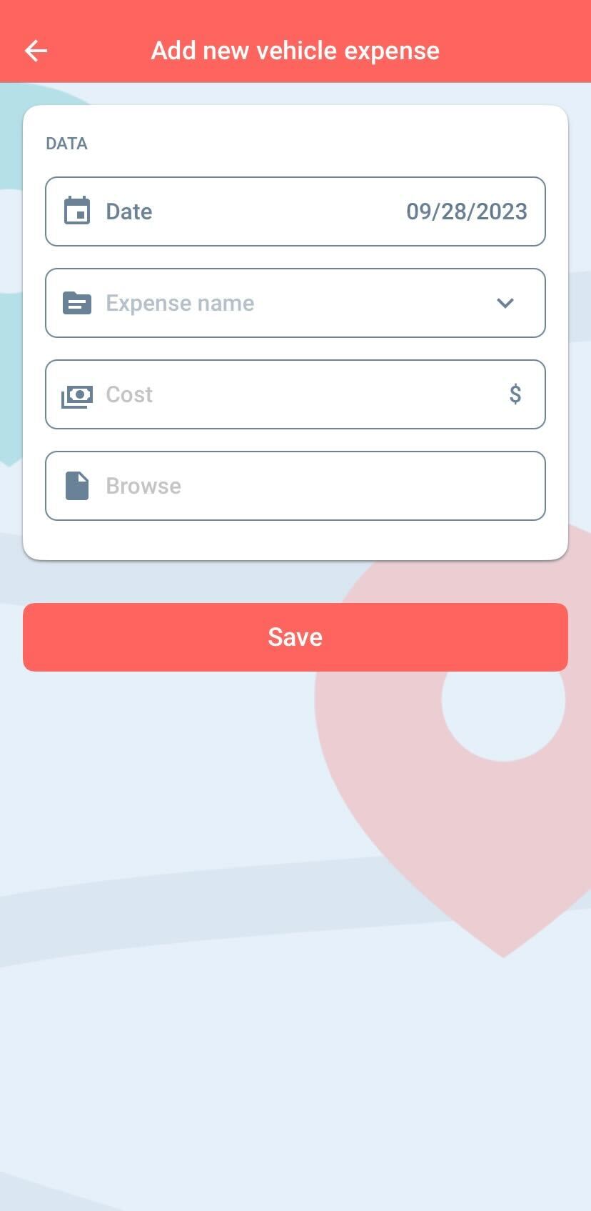 To track expenses for each vehicle separately, start by using the vehicle selector to choose the appropriate vehicle. Then, press the red ‘+’ icon in the bottom right corner to add a new expense.